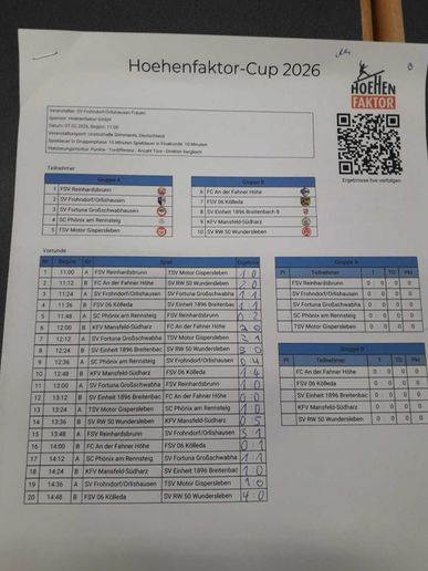 Bereits zum vierten Mal in Folge veranstalteten unsere Frauen ihr eigenes Hallenturnier in der Sömmerdaer Unstruthalle. Der heutige "Höhenfaktor-Cup" - vielen Dank an Marco Vogler - musste einen kleinen Rückschlag hinnehmen, da eine Mannschaft kurzfristig absagte. Durch die guten Kontake unster den Teams konnte mit xxxxxx ein Ersatz gefunden werden. Das Team wurde dann mit namenhaften SV-Girls noch aufgefüllt.